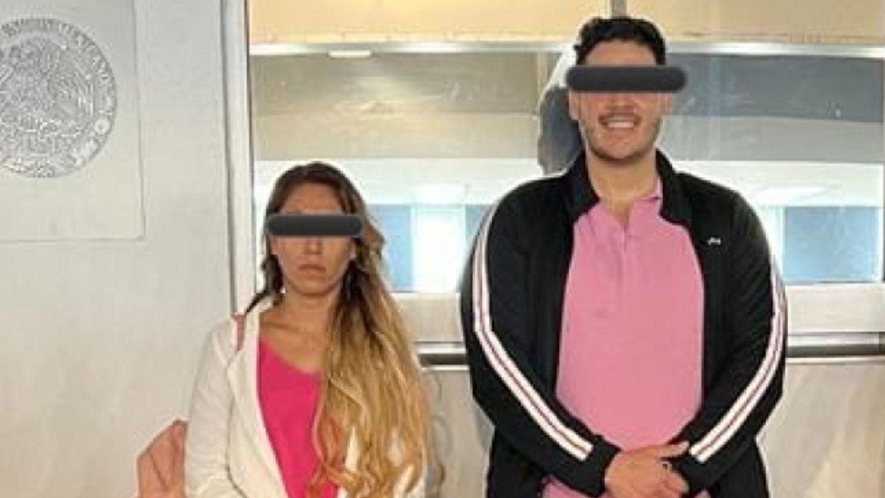 La pareja fue trasladada a oficinas de la Fiscalía General de la República (FGR) en el aeropuerto, donde serán puestos a disposición de la autoridad por posibles delitos contra la salud.