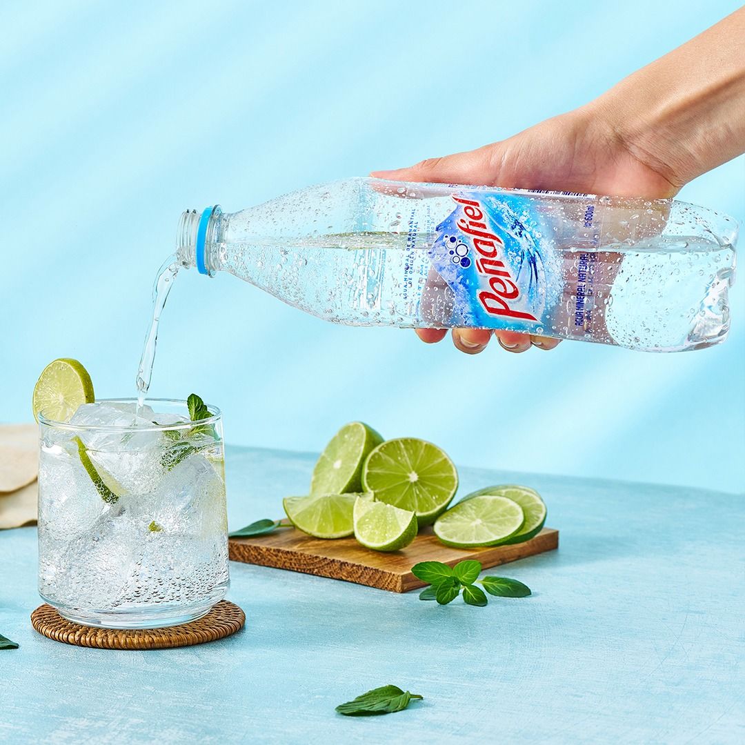 Agregar hielo y añadir Agua Mineral Peñafiel.
